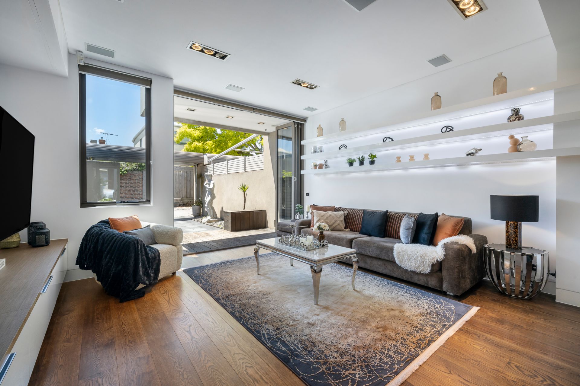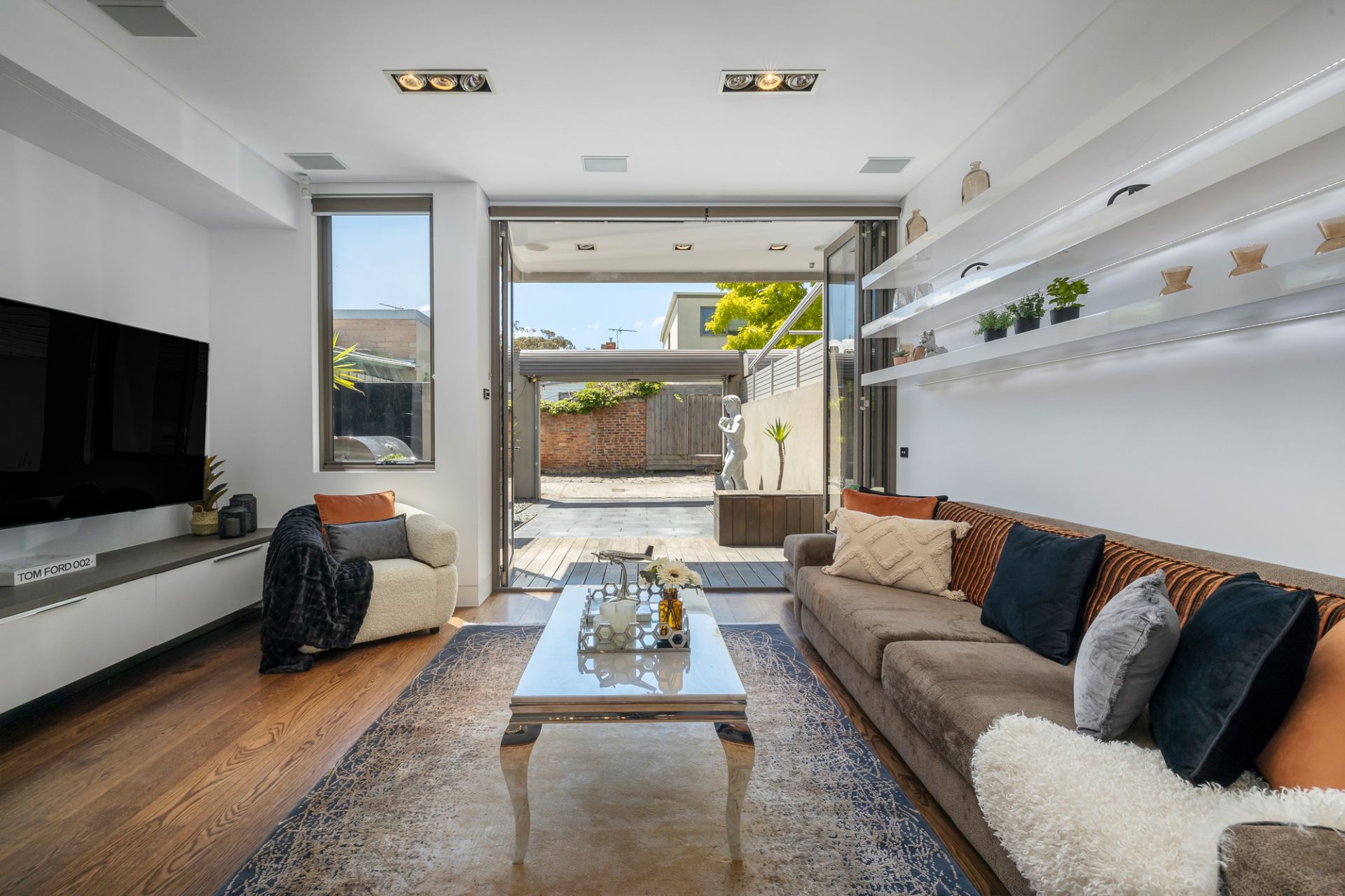 Cutting edge architecture, spacious indoor/outdoor living and luxury opulent bathrooms are the features of this 3 bedroom, 3 bathroom residence designed by Mills Gorman. The centerpiece of this home is the stunning gourmet kitchen, awashed with the finest Italian stone and complemented by state of the art Miele appliances. European Oak floors allow for a seamless flow between the adjoining dining area and expansive living zones, with an abundance of light following through to the northern orientated rear courtyard. 'Rock star' master suite with designer marble basins and deep luxurious bath. Two further bedrooms and two further bathrooms allow flexible living for today. Special features include European laundry with washer and dryer, ducted vacuum, built in bed and zoned heating and cooling. Competing the picture is off street parking from ROW at rear, and only one minute walk to the golden sands of Albert Park beach. This home represents a rare opportunity to experience designer living in a tightly held location. Inspect as advertised or by appointment.