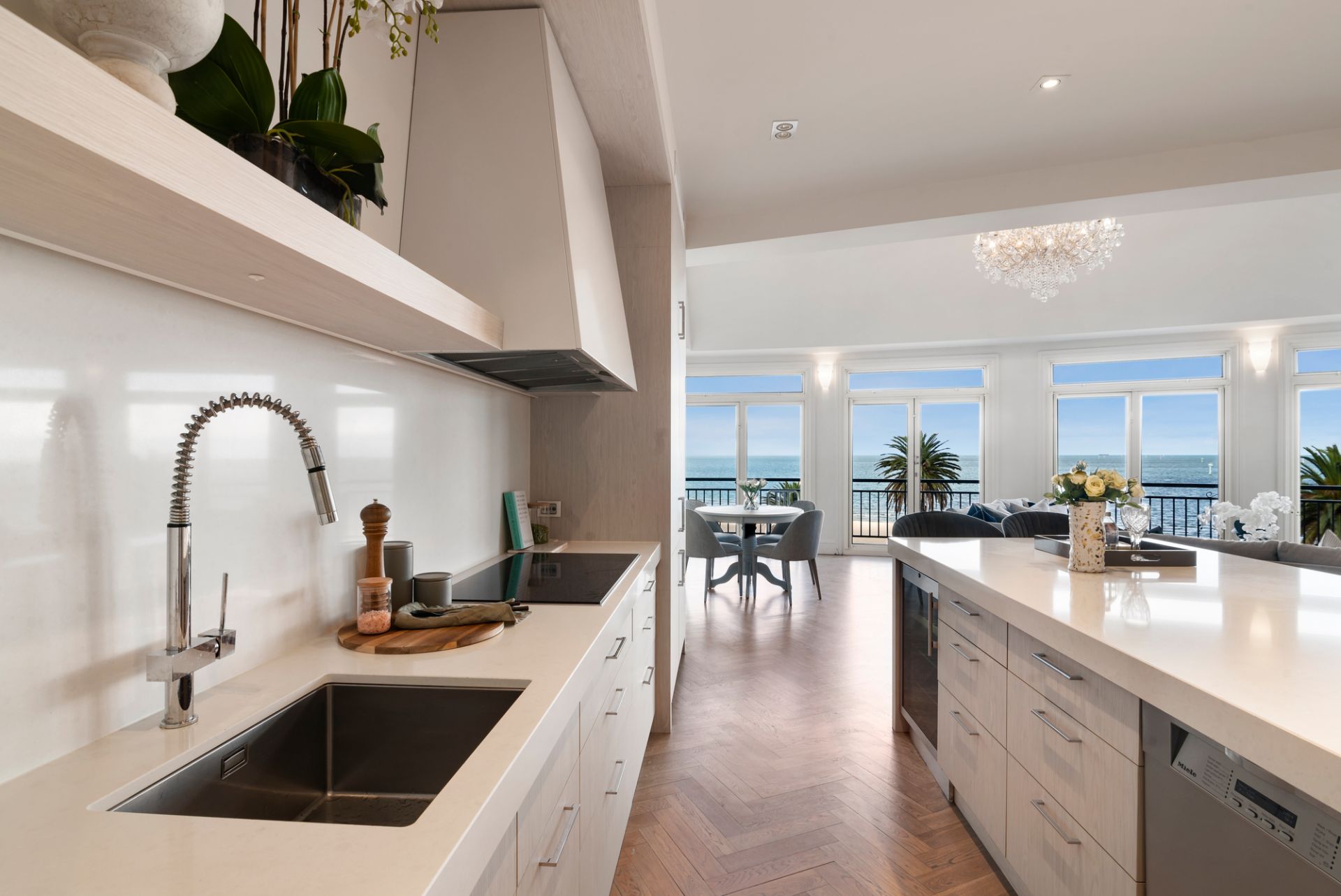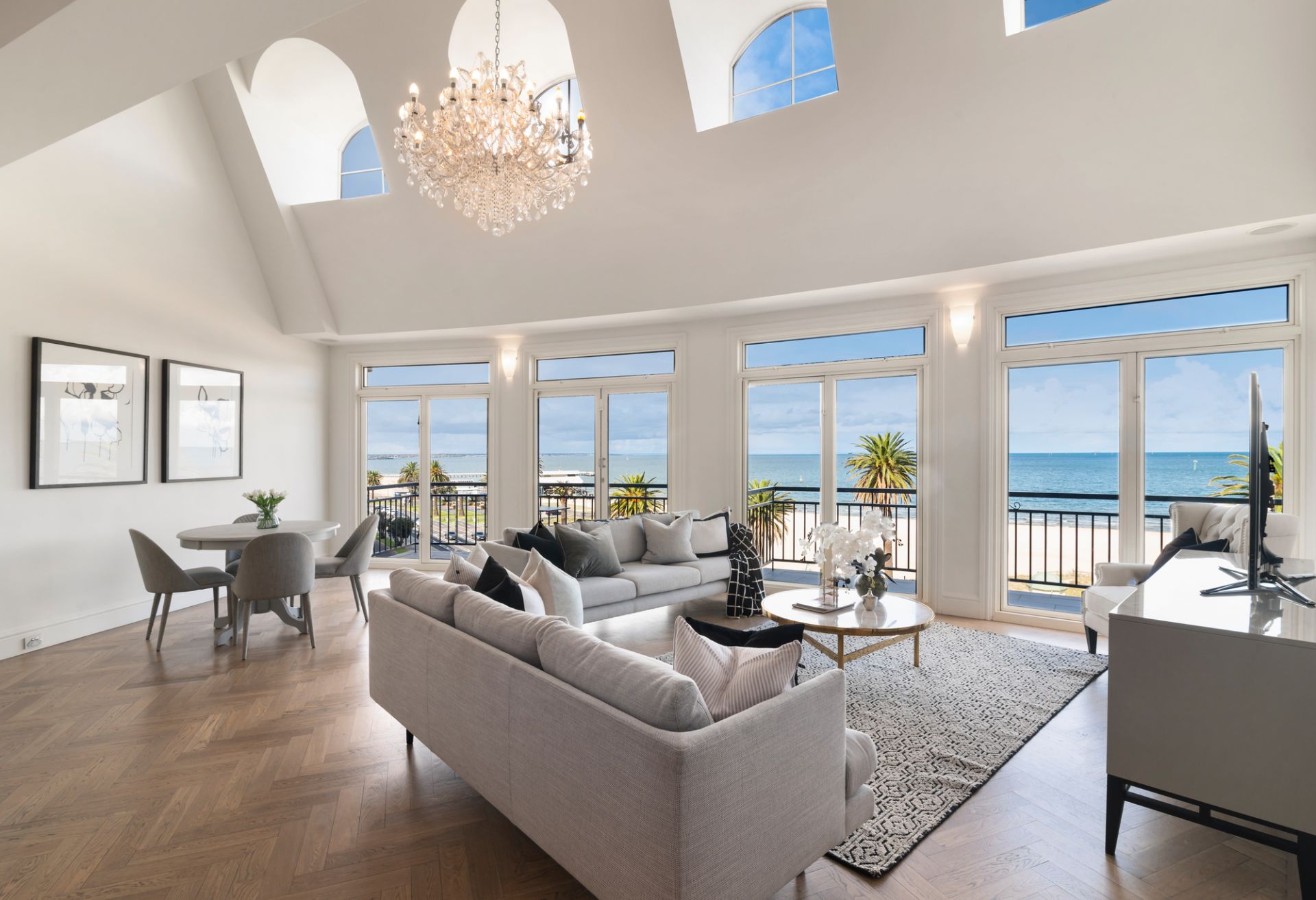 The comprehensive, just completed renovation of this stunning apartment in THE ANCHORAGE achieves luxury levels that set fresh standards for a fabulous address that looks over the beach to the blue of Hobsons Bay. Imported oak floors and high ceilings define superb living/entertaining areas accompanied by an open plan kitchen in which stone benches, a butler's pantry, De Dietrich appliances and integrated refrigerator/freezer and wine storage from Liebherr reflect the impact of a perfectionist's approach. A formal dining domain contributes third bedroom flexibility to a floor-plan featuring two alluring bedrooms, each with superb marble ensuite, including a palatial upstairs main bedroom with dual walk-in robes and study/retreat. Landscaped gardens, great pool, gym and garaging for two cars complement the ultimate desirability of a beach-side residence that's clearly in a class of its own.