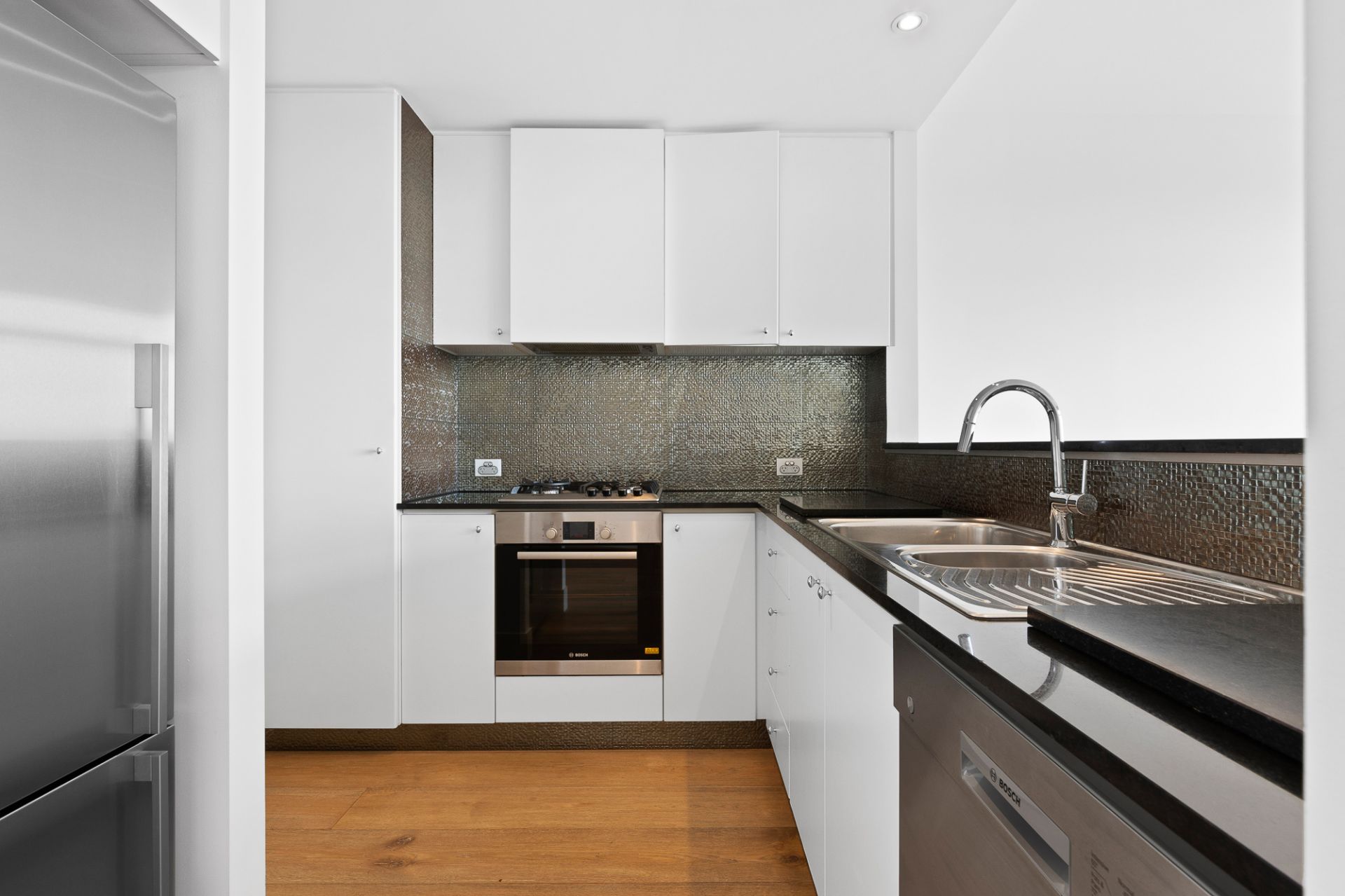 Enhancing this exceptional address, this inviting oversized luxury apartment is a sublime sanctuary enhanced by a superb inner-city location just minutes to the CBD and steps to the sea. Located in "The Anchorage" – The old biscuit factory, where superb spaces enjoy luxury landscaped gardens, great outdoor pool, gymnasium and complete security. Streaming with natural light, the open plan living and dining domains with Siberian/European Oak boards are served by a gourmet kitchen with marble benchtops and stainless steel Bosh appliances and a West facing facing balcony where the bay awaits at the end of the Street. A spacious main bedroom with walk-in-robes is complete with an opulent ensuite and a private balcony overlooking the manicured gardens with lovely East facing morning sun. A further bedroom with fitted built in robes is served with a central bathroom including bath for a perfect evening windown.