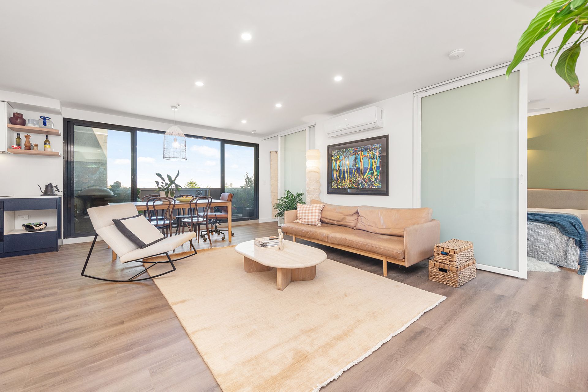 Perfectly positioned on the fourth floor of the highly sought-after ID building, this stunning two-bedroom apartment offers a rare opportunity to embrace the Port Melbourne lifestyle in style and comfort. Thoughtfully renovated with bespoke finishes, this home is designed for effortless living and entertaining. Flooded with natural light from expansive floor-to-ceiling windows, the open-plan living and dining area provides the perfect space to relax or entertain. Sliding doors seamlessly extend the living area onto a spacious balcony, where you can enjoy breathtaking bay views over a glass of wine-ideal for hosting family and friends all year round.