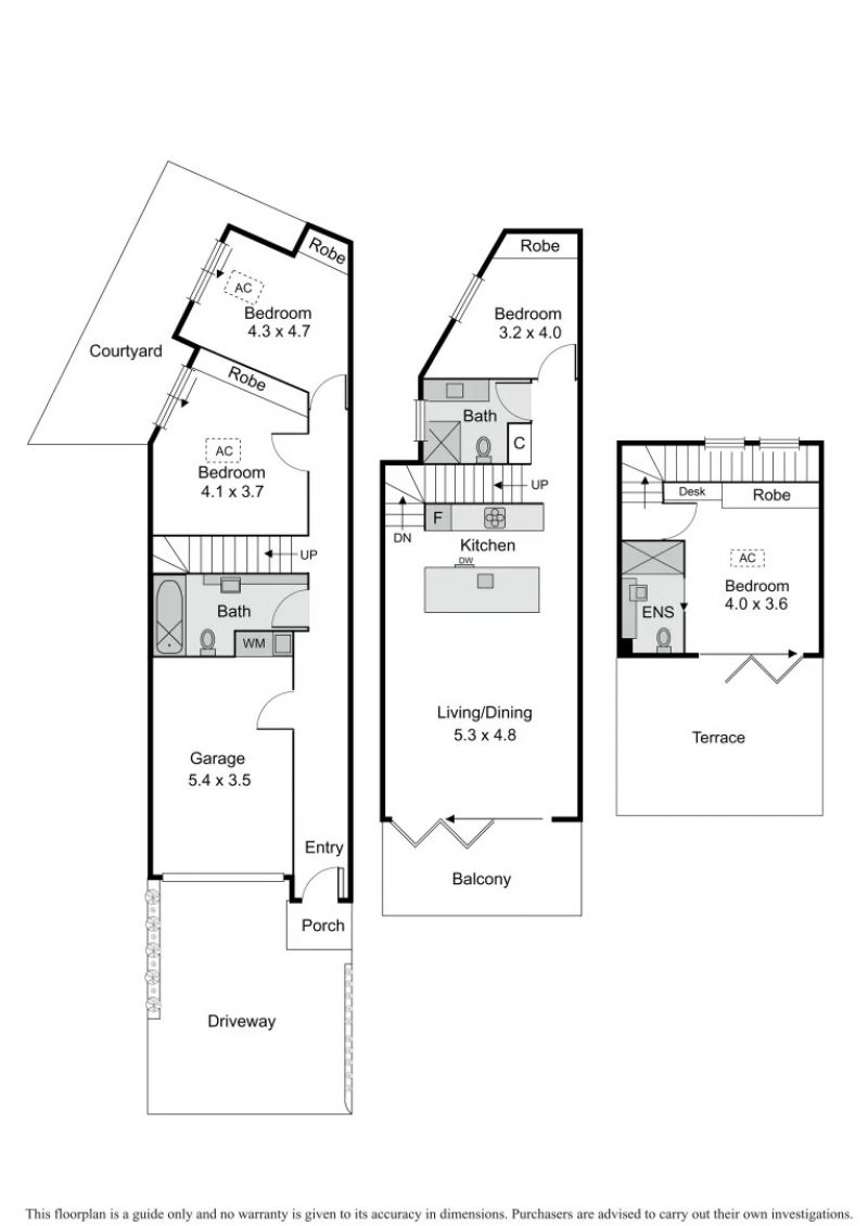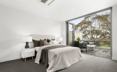 This modern marvel showcases 3 distinct levels with 3 individual alfresco areas creating a balance of indoor/outdoor living. The lower level is home to 2 spacious bedrooms (fitted robes) with access to a maintenance-free honed bluestone courtyard serviced by a natural stone look bathroom. The mid-level is the place to entertain with its plush open plan living and dining area featuring a stylish marble look kitchen (integrated Fisher & Paykel fridge, Smeg appliances) and a parkside alfresco terrace; with a tucked away 3rd bedroom (robes) with a private bathroom behind the kitchen. The top-level is the main bedroom domain with its spectacular views of the park and the sparkling city in the landscape, featuring an impressive alfresco terrace, a built in desk, sumptuous ensuite and wall of robes.