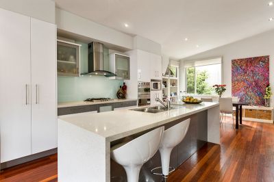 Downstairs, two spacious bedrooms each feature their own private ensuites (the master with a luxurious bath) and built-in robes, opening onto a sun-drenched north-facing courtyard-an entertainer's dream.
