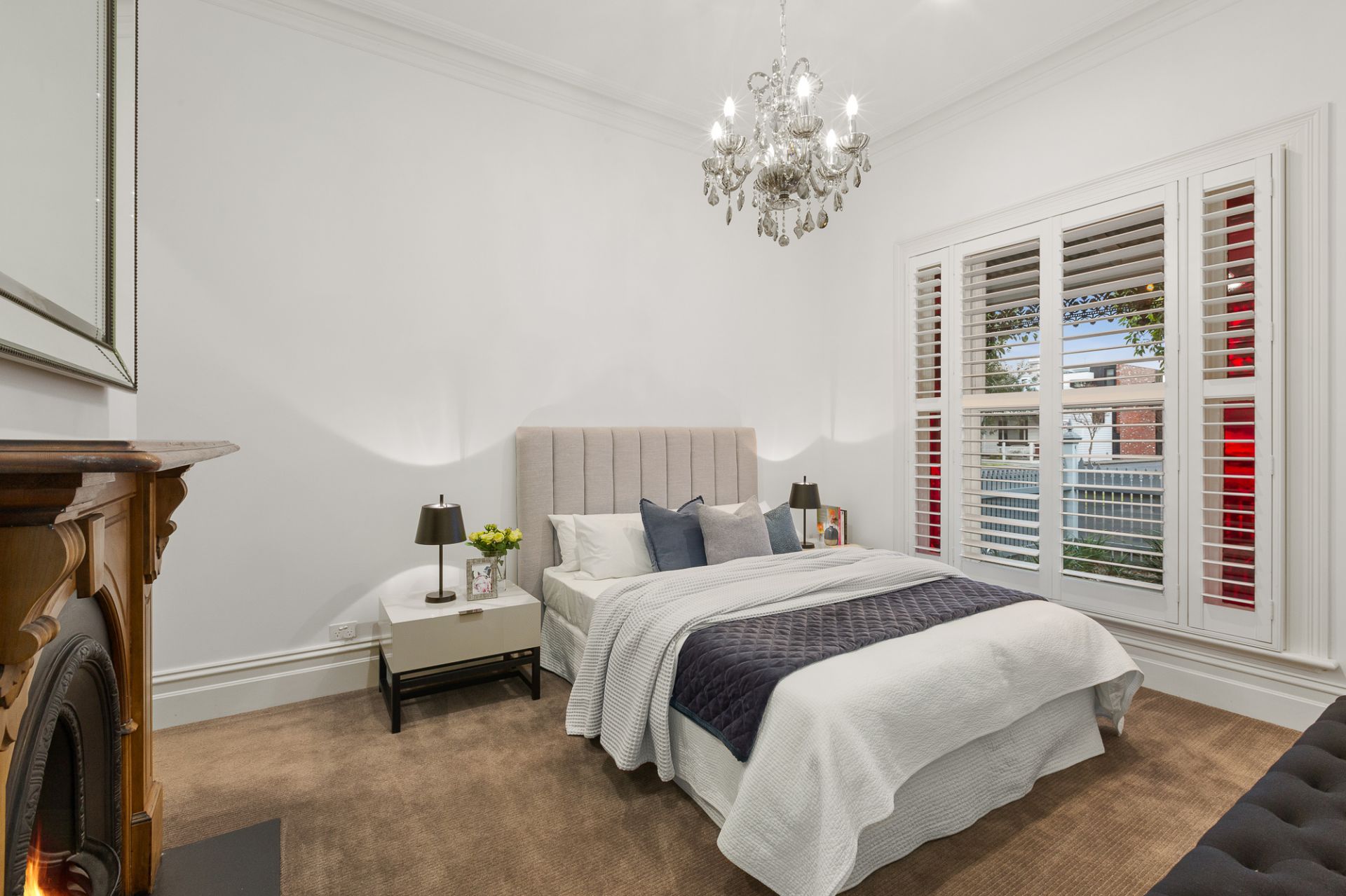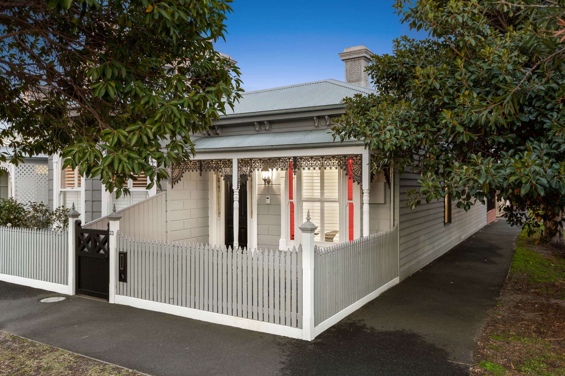 Combining luxury living with traditional charm, this immaculate residence boasts a prized location a short walk to the beach, Albert Park Lake, cafes and more. Boasting plenty of street appeal, the tastefully re designed terrace is positioned on a low maintenance corner allotment less than 300m from Middle Park Primary School. The light filled interior showcases quality finishes including high ceilings, travertine tiles, marble benchtops and American Oak timber floors. Detailed cornices, fretwork and stained glass windows are among the period style features. Forming the hub of the home is a kitchen with a waterfall island, soft closing drawers, an integrated refrigerator and stainless steel Miele appliances. The open plan living/dining, with a gas log fire and built in cabinetry, flows onto a sun drenched alfresco area.