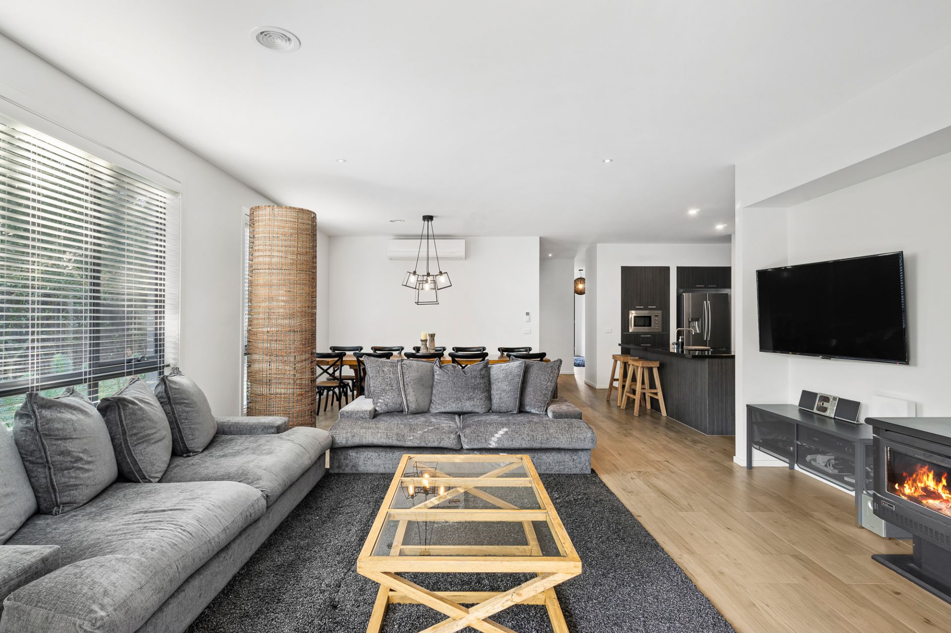 Contemporary in design, this 4 bedroom, resort-style residence on a large corner block is designed for intuitive family living. The expansive light-filled main living zone with wood-fire heater looks out to the alfresco area and decked swimming pool. The black-stone kitchen has an island bench, S/S Euro appliances and a large walk-in pantry. Comprises master suite with WIR and ensuite, 3 further bedrooms with BIRs, family bathroom, home-office, rumpus room. Includes ducted heating, split system A/C, security system, gas/solar heated pool, gas-plumbed BBQ & remote-controlled DBLU garage with internal access.