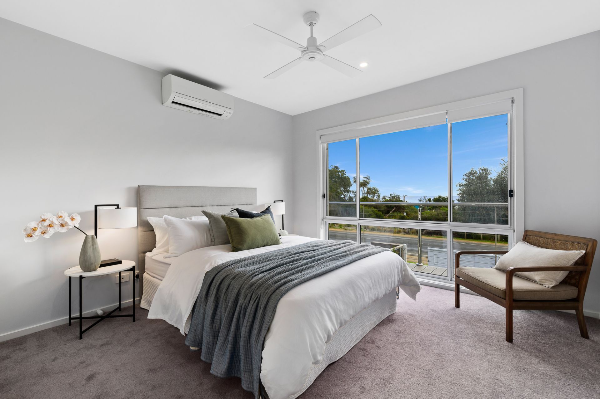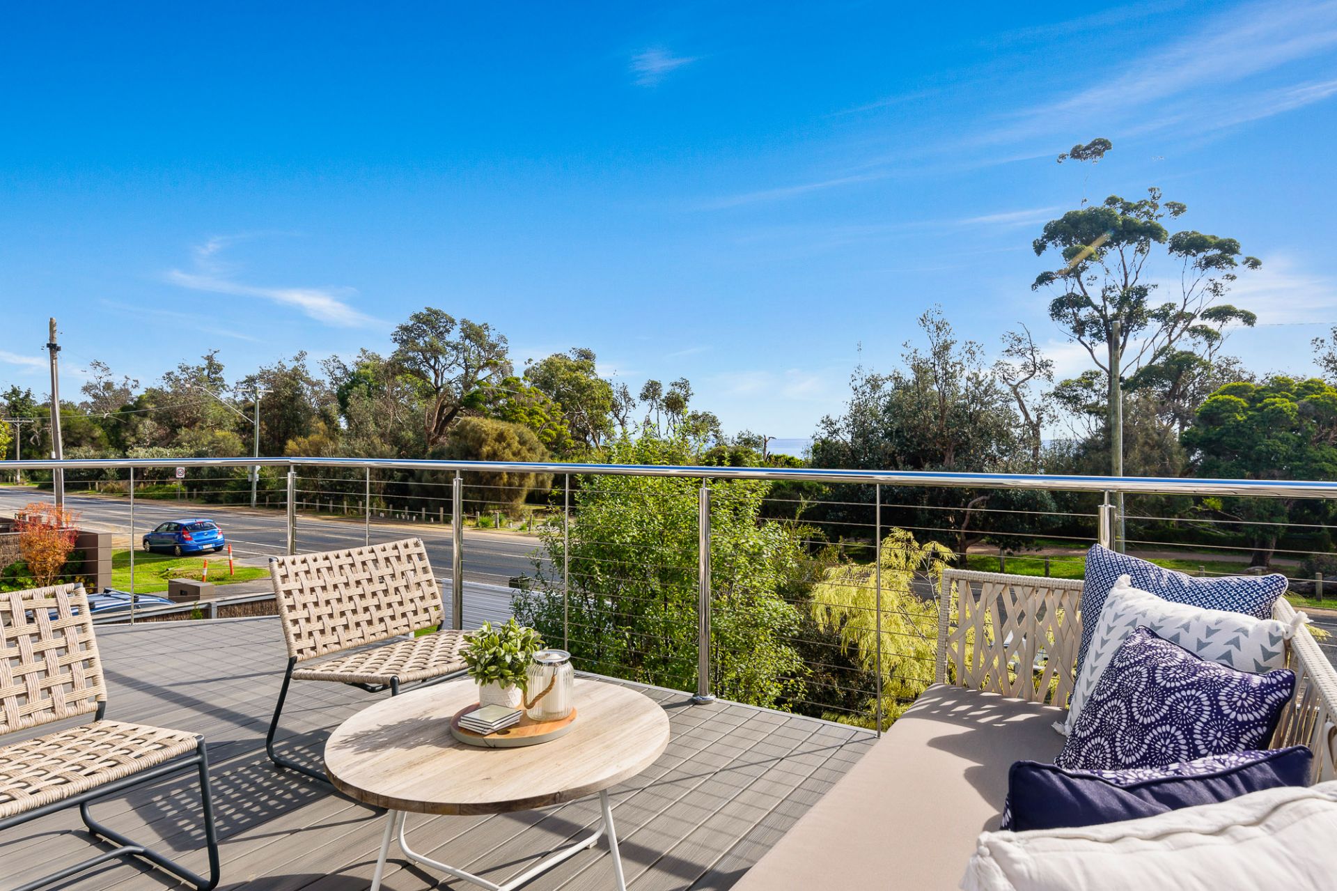 The blue expanse of Port Phillip Bay and a bushy backdrop of the Arthurs Seat escarpment create a stunning setting for this elevated beach house along an exclusive stretch of Point Nepean Road. Perfectly presented with clean lines and a coastal-cool airiness, the house is set in manicured gardens behind a high fence. From the entrance foyer take the lift or the stairs to the open plan living/dining area which celebrates the magnificent Bay views. A sea of picture-windows frame the vista and a sliding door leads to the expansive deck overlooking a particularly scenic portion of McCrae beach. Sleek kitchen with central island and S/S wall oven. Three bedrooms, master has excellent Bay views, while the other two have bushy landscape outlooks. There is hydronic heating, including a heated towel-rail in the well-appointed main bathroom, and split system A/C. There is a separate 'post beach' shower, under-stair storage, and single remote garage with internal access. Fully landscaped with a stairway carved into the escarpment that leads to an incredible viewing deck. For hikers, the house is just metres to the Two Bays Track trailhead and it's just a few minutes' walk to McCrae lighthouse and easy access to Peninsula link.