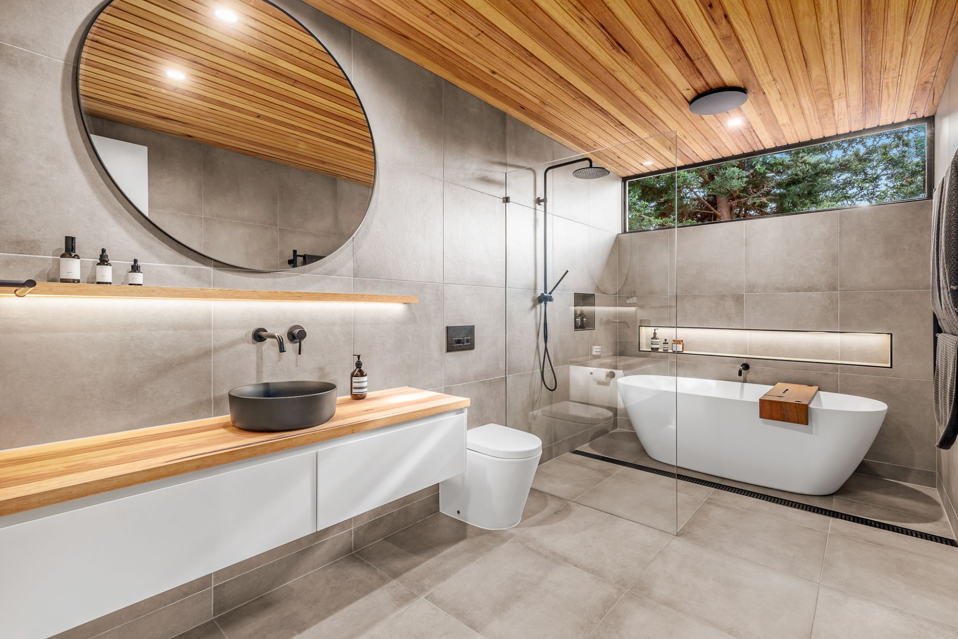 Large sliding doors throughout the house allow the right amount morning and afternoon sun and split system heating and cooling allows for perfect temperature control throughout the seasons.