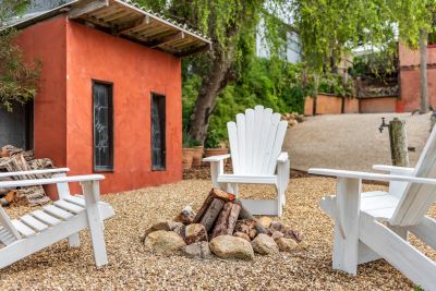 Outdoor entertaining is a highlight, with multiple alfresco zones including an exquisite original wood fired pizza oven set within an idyllic walled courtyard flanked by olive trees, plus a fire pit area with outdoor shelter for year-round enjoyment.