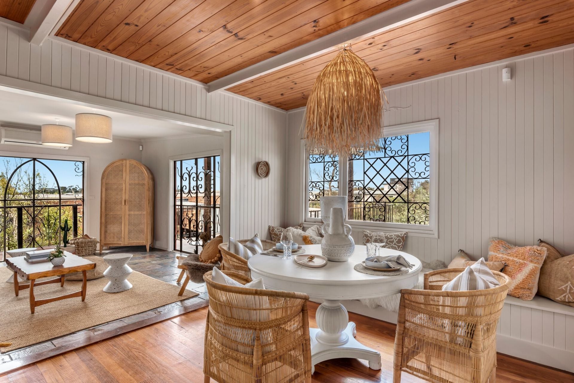 Circa 1950s and rich in Mediterranean character, the home has recently been refurbished and beautifully re styled as an indulgent coastal retreat, blending old world charm with a relaxed, contemporary beachside vibe. Original features abound, including ornate cast iron windows, doors and balustrades, slate and timber flooring, and panelled walls and ceilings.