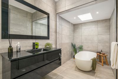 The master suite is a true private retreat, offering a spacious lounge area, walk in robe, and access to a secluded deck, creating a sanctuary like escape within your own home. The main bathroom elevates everyday living with a deep soaking bath, waterfall shower, and a striking sky opening window that fills the space with natural light. Beyond the interiors, the property unfolds into a lush botanical oasis, where a heated magnesium pool with spa jets and smart remote system promises all year round enjoyment, while a mature orchard provides an abundance of apricots, cherries, limes, lemons, and olives.